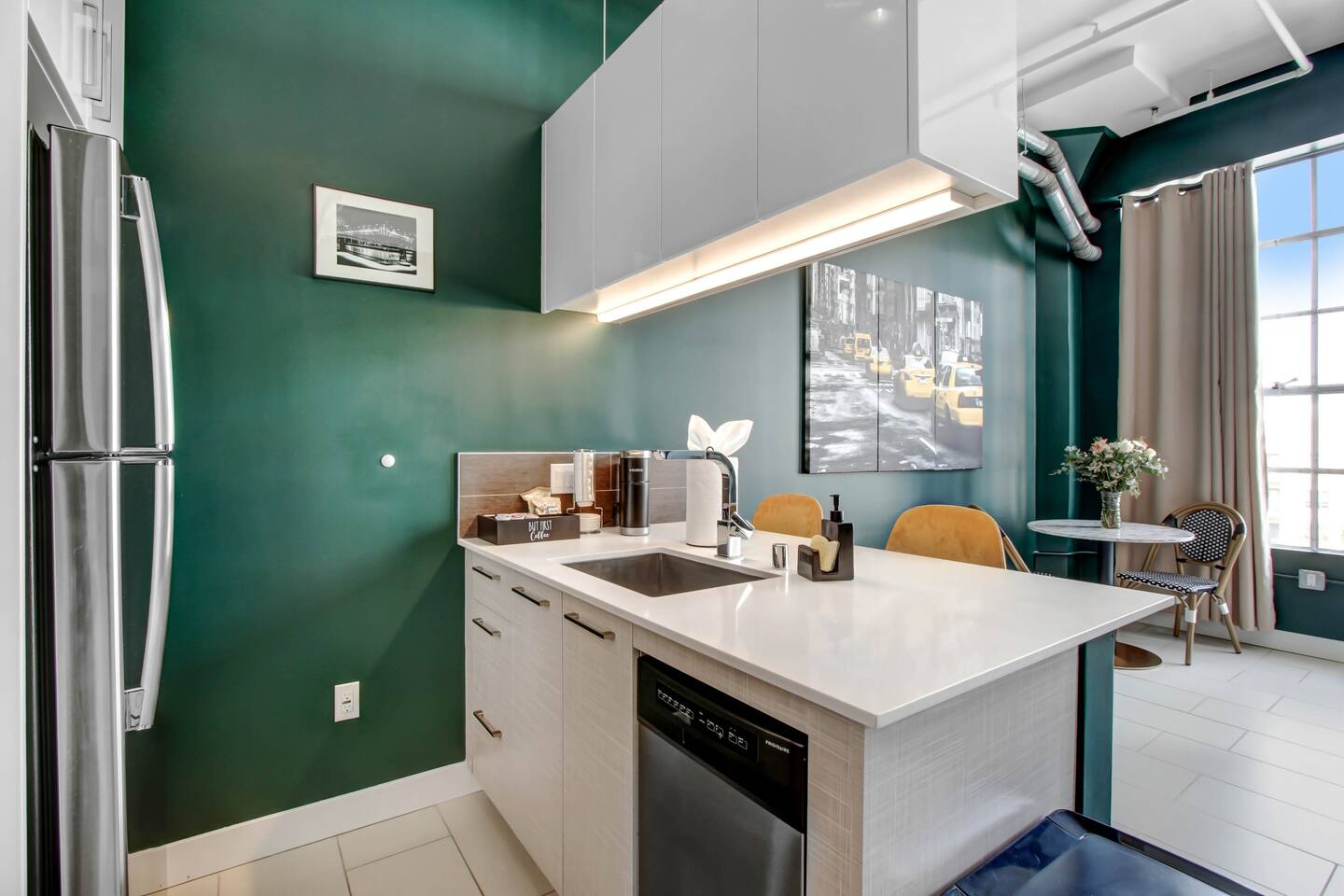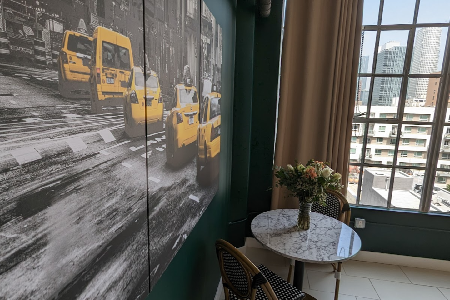 Most downtown LA apartments feel like carbon copies of each other—same white walls, same soulless decor, same hotel vibes. As a New Yorker now living in Los Angeles, we knew we had to offer something different—something with soul, identity, and storytelling. So we created an immersive NYC loft experience right here in DTLA. From the green accents inspired by New York’s iconic highway signs to yellow touches that recall our beloved city cabs, this apartment offers the style and feel of a Greenwich Village flat—without the freezing winters or muggy summer heat. The bedroom features a faux exposed brick wall and a panoramic multi-piece artwork designed to look like you’re gazing out the window of a classic NYC high-rise. Even the bathroom gets in on the vibe, with a playful shower curtain styled like the NYC subway map. This isn’t just a place to sleep—it’s an experience to remember. And to make it effortless, we’ve integrated smart home tech throughout the unit: voice-activated lighting, high-speed WiFi, and full access to streaming services. A Day in Your Stay Wake up in your private NYC-inspired loft and sip your coffee by the light streaming through the oversized windows. Then lace up your walking shoes and hit the streets of DTLA—just like a proper New Yorker would. Stroll through the Historic Core, marvel at the ornate architecture, and pop into local cafes or food halls for a quick bite. Spend your afternoon exploring The Broad Museum’s world-class contemporary art or take a short ride to the Natural History Museum for a deep dive into LA’s past. When night falls, the city shifts gears. Grab dinner at one of downtown’s many incredible eateries—Korean BBQ on 7th, Michelin-starred sushi, or an Oaxacan tlayuda. Then catch an award-winning play at the Ahmanson, or take a quick drive to The Dolby or The Pantages in Hollywood to see the best of Broadway brought to the West Coast. And when it’s time to come home, head back to your “NYC flat” to unwind with skyline views, a smart home system that responds to your voice, and a space that doesn’t just feel like a rental—it feels like home.