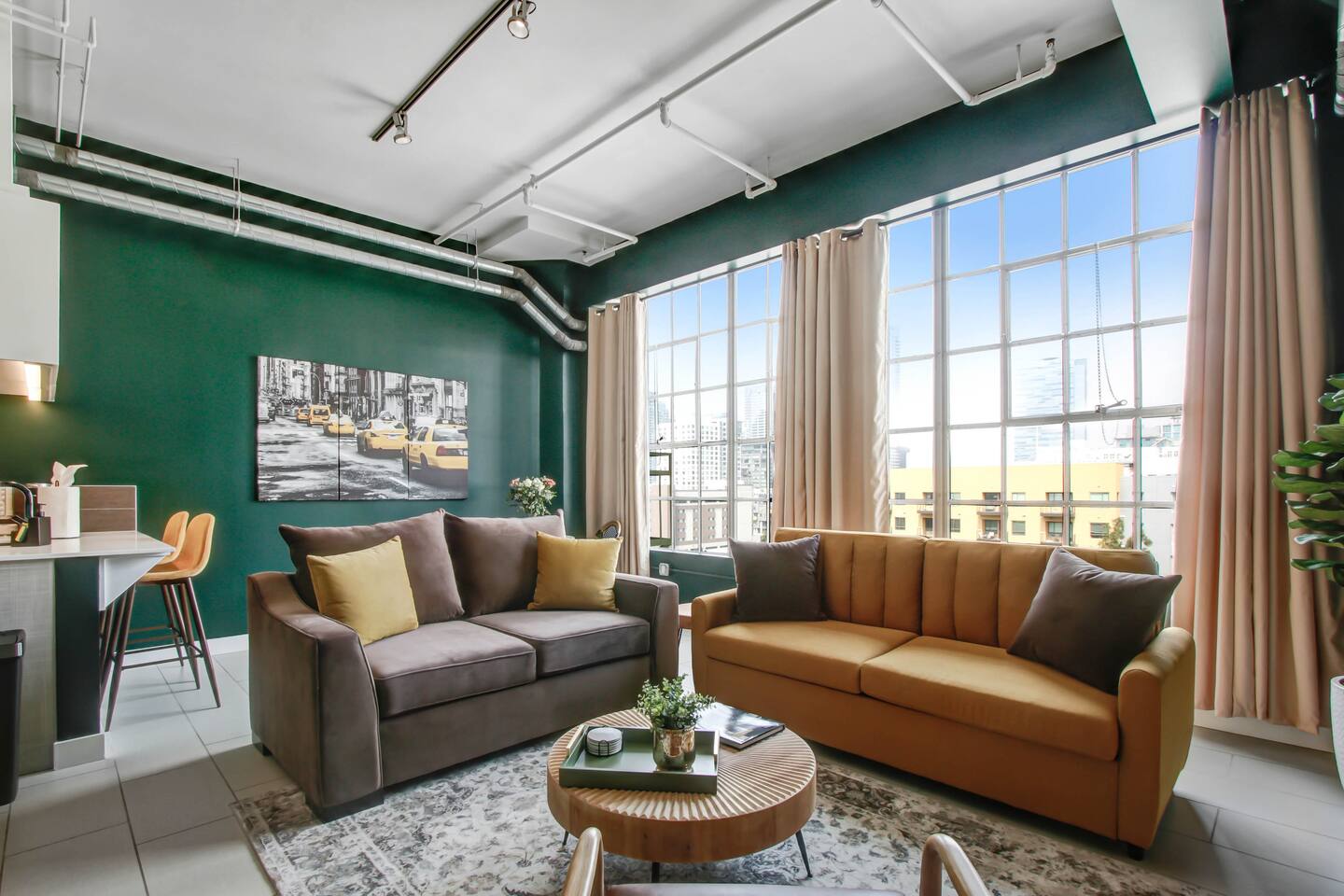 NYC loft vibes meet LA sunshine in this stylish 1BR unit. High ceilings, faux exposed brick, and NYC-inspired decor evoke Greenwich Village charm, without the cold winter nights or the humid summer days—right in the heart of DTLA. A queen bed and sleeper sofa comfortably host up to 4 guests. Enjoy a full kitchen, bistro dining space, bar setup, smart home tech, and streaming. Don’t miss the stunning 360° rooftop pool with skyline views. Free secured parking included for total convenience.